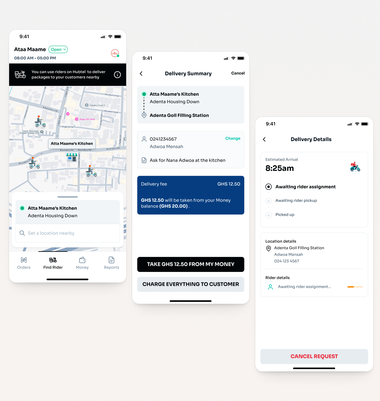 Led the design of the v1 Find Rider experience, working directly with C-suite stakeholders and managing the design effort that enabled retailers to complete 100+ non-Hubtel deliveries within 2 months, expanding the Retailer App beyond Hubtel-only orders.